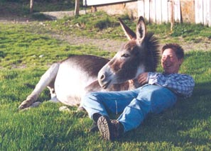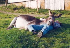 Das war eine meiner Lieblingsarbeiten: mit den Eseln "holza". Schon mit den Pferden habe ich am liebsten auf dem Feld & im Wald gearbeitet. |