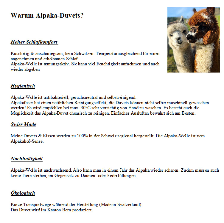 Von oben bis unten in Alpaka eingebettet! Alpaka - Duvet - Kissen - Matratzenauflage direkt vom Züchter |
